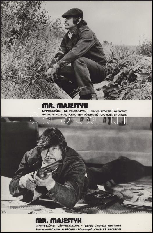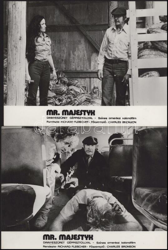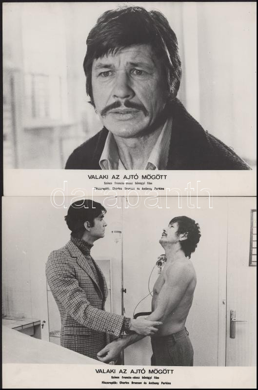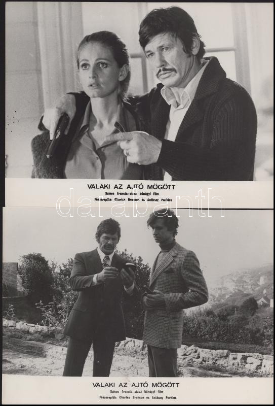 Charles Bronson főszereplésével készült filmek (Valaki az ajtó mögött; Mr. Majestyk) jelenetei és szereplői, 13 db vintage produkciós filmfotó (vitrinfotó, lobbyfotó) ezüst zselatinos fotópapíron, a használatból eredő (esetleges) kisebb hibákkal, 18x24 cm