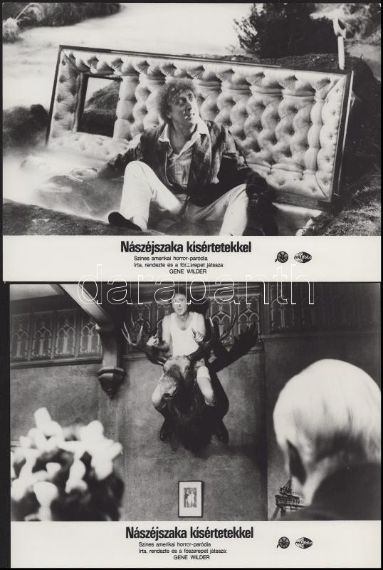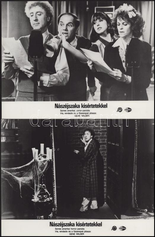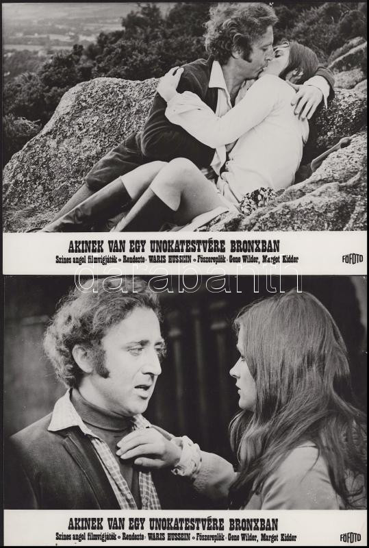 Gene Wilder főszereplésével készült filmek (Nászéjszaka kísértetekkel; Ki kém, ki nem kém?; Akinek van egy unokatestvére Bronxban) jelenetei és szereplői, 13 db vintage produkciós filmfotó (vitrinfotó, lobbyfotó) ezüst zselatinos fotópapíron, a használatból eredő (esetleges) kisebb hibákkal, 18x24 cm