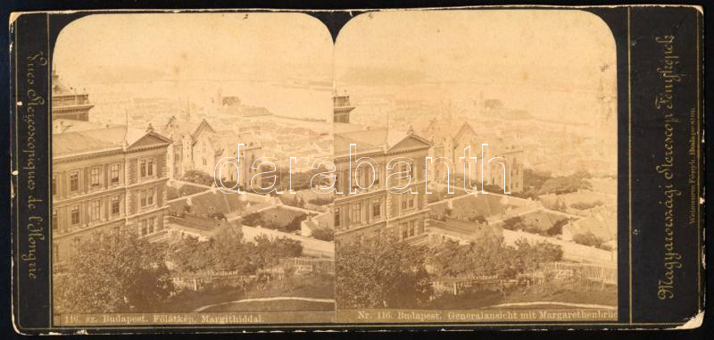 cca 1884 Budapest, a Margitsziget Buda felől, sztereófotó Weinwurm Antal műterméből, 8,5×18,5 cm