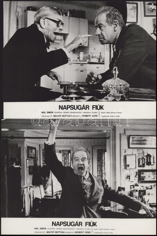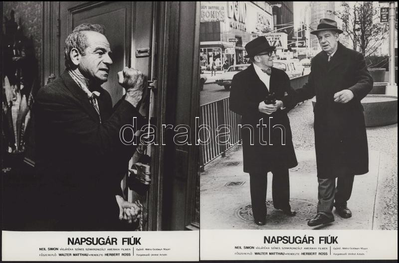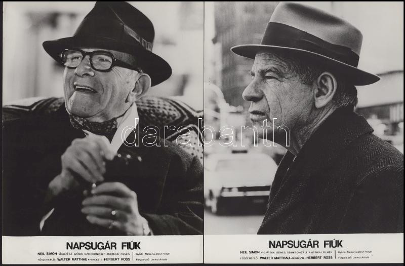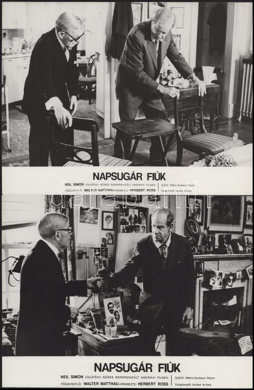 Walter Matthau főszereplésével készült film (Napsugár fiúk) jelenetei és szereplői, 11 db vintage produkciós filmfotó (vitrinfotó, lobbyfotó) ezüst zselatinos fotópapíron, a használatból eredő (esetleges) kisebb hibákkal, 18x24 cm