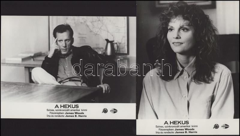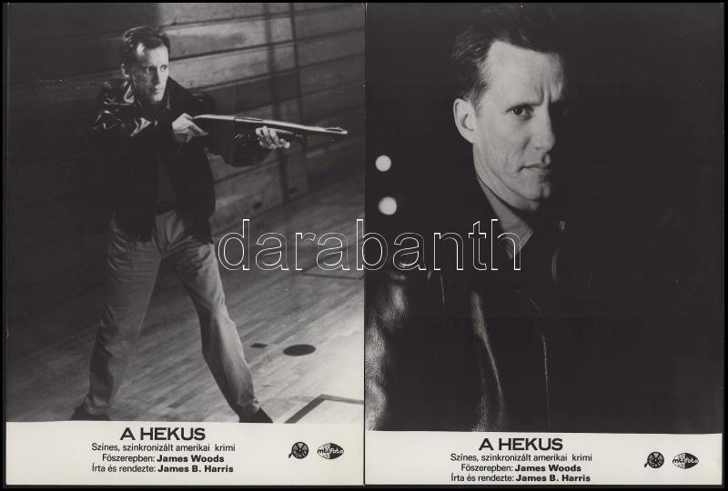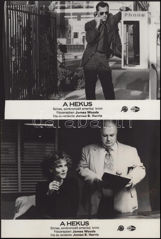 cca 1989 előtt készült, "A hekus" című film jelenetei és szereplői (főszereplő James Woods), 6 db vintage produkciós filmfotó (vitrinfotó, lobbyfotó) ezüst zselatinos fotópapíron, a használatból eredő (esetleges) kisebb hibákkal, 18x24 cm