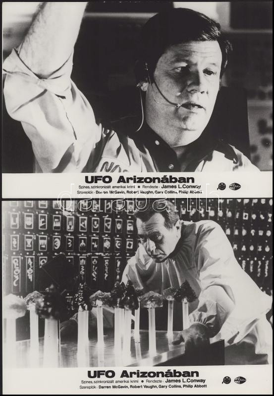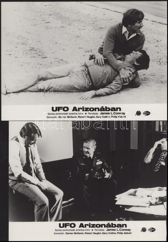 cca 1989 előtt készült, "UFO Arizónában" című film jelenetei és szereplői, 6 db vintage produkciós filmfotó (vitrinfotó, lobbyfotó) ezüst zselatinos fotópapíron, a használatból eredő (esetleges) kisebb hibákkal, 18x24 cm