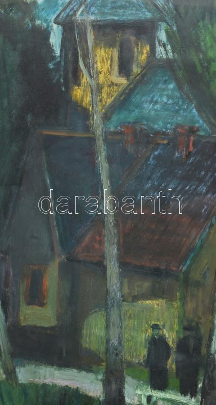 Leírás: Kovács Sándor (1914-?): Dömsöd. Olaj, farost, jelezve jobbra lent. Hátoldalán Képcsarnok Vállalat címkéivel. Üvegezett fakeretben. 60x80 cm