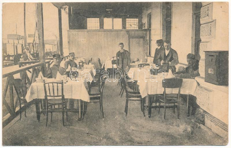 Leírás: 1923 Dés, Dej; Pályaudvari étterem, Vasútállomás étterme, belső / railway station's restaurant, interior (EK)