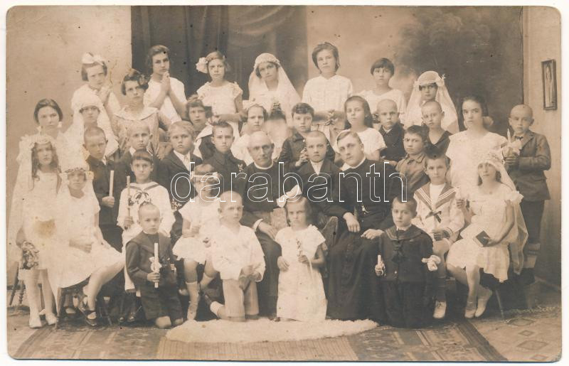 1927 Torda, Turda; Elsőáldozó gyerekek pappal / First Communion, pries... https://www.darabanth.com/hu/460-Gyorsarveres/460.0/Kepeslapok/Erdely~1500006/1927-Torda-Turda-Elsoaldozo-gyerekek-pappal-First-Communion-priests-Mihaly-photo-fl~II3013776