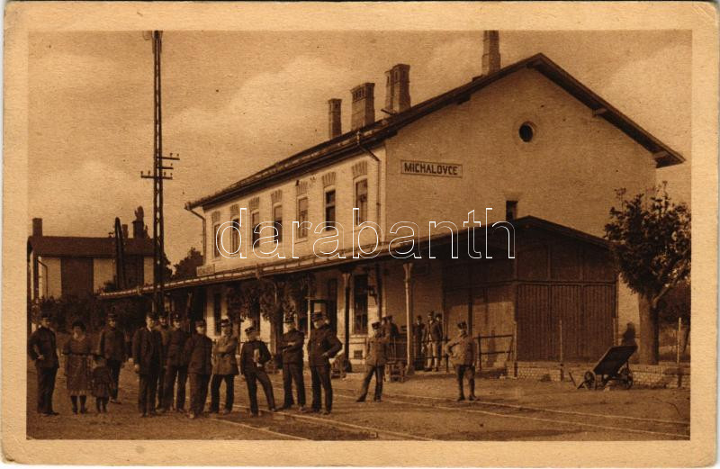 1924 Nagymihály, Michalovce; Indóház, vasútállomás, vasutasok. Alexand...