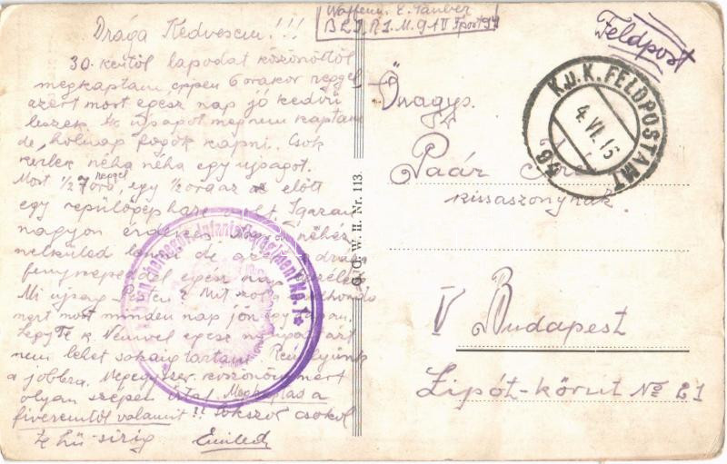1916 Gebet vor der Schlacht / Ima az ütközet előtt / WWI Austro-Hungarian K.u.K. military art postcard, prayer before battle. G.G.W.II. Nr. 113. + "K.U.K. FELDPOSTAMT 94" (kopott sarkak / worn corners)