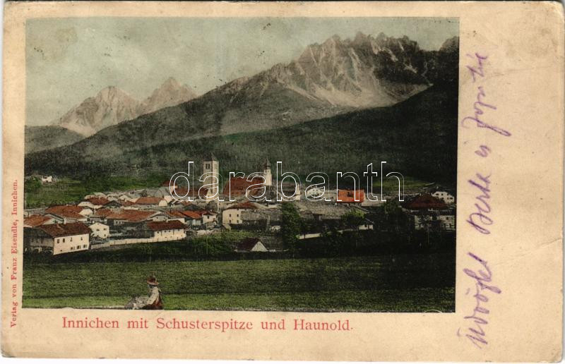 1902 San Candido, Innichen (Südtirol); Innichen mit Schusterspitze und... https://www.darabanth.com/hu/460-Gyorsarveres/460.0/Kepeslapok/Olaszorszag~1500076/1902-San-Candido-Innichen-Sudtirol-Innichen-mit-Schusterspitze-und-Haunold-wet-corners~II3083888
