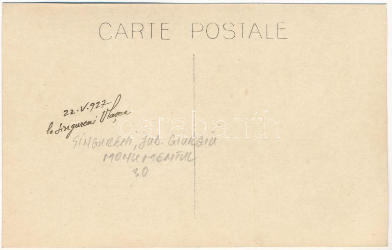 1927 Singureni, Monumentul / monument. photo (vágott / cut) https://www.darabanth.com/hu/460-Gyorsarveres/460.0/Kepeslapok/Romania~1500081/1927-Singureni-Monumentul-monument-photo-vagott-cut~II3032983