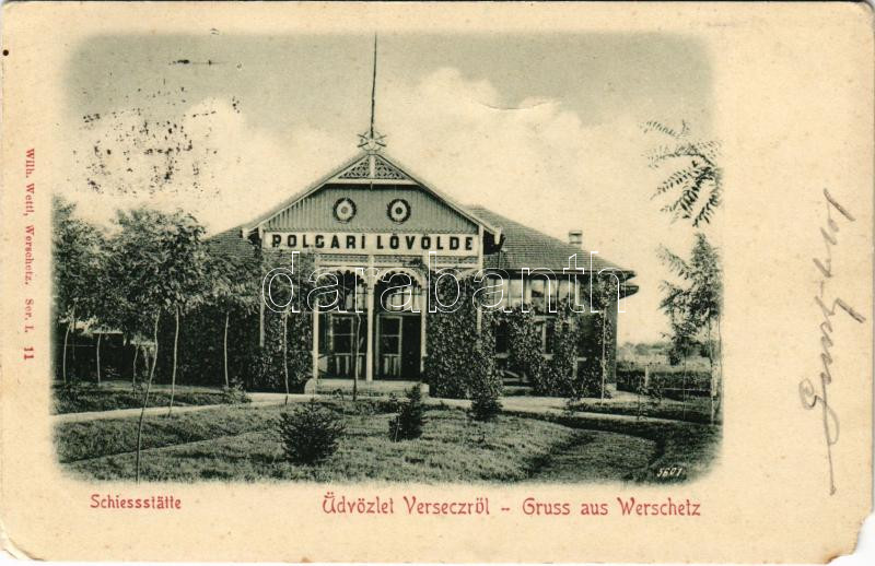 1899 (Vorläufer) Versec, Werschetz, Vrsac; Polgári lövölde. Wilh. Wett... https://www.darabanth.com/hu/460-Gyorsarveres/460.0/Kepeslapok/Vajdasag~1500010/1899-Vorlaufer-Versec-Werschetz-Vrsac-Polgari-lovolde-Wilh-Wettl-kiadasa-Schiesstatte-~II3084447