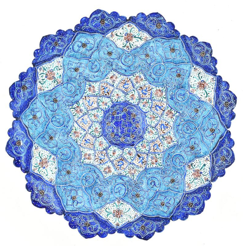 Leírás: Asztali / fali dísztál, domborított, zománcfestett fém, jó állapotban, d: 24 cm