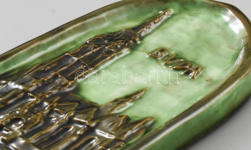Leírás: Mátyás-templom. Buda. Mázas kerámia plakett, jelzés nélkül, hibátlan, 19x11 cm