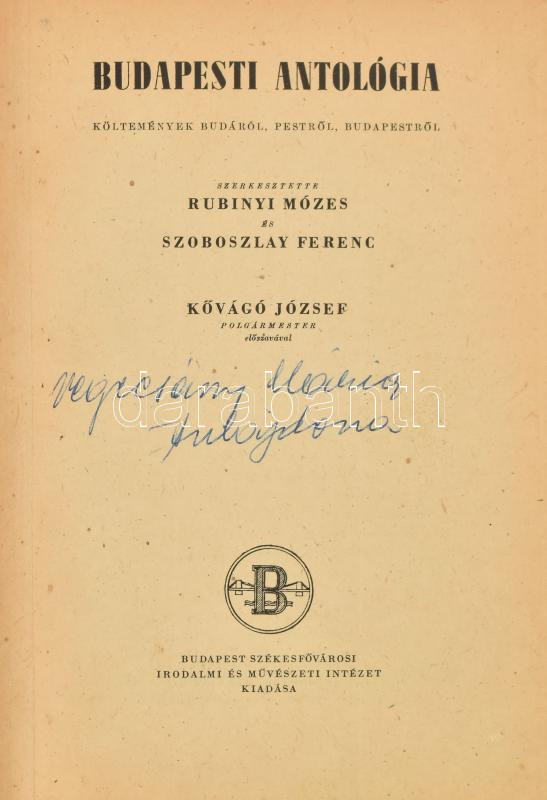 Rubinyi Mózes és Szoboszlay Ferenc Budapesti Antológia. Bp., én. Budap... https://www.darabanth.com/hu/460-Gyorsarveres/460.0/Mutargy-papirregiseg-egyeb/Budapest-150~2500001/Rubinyi-Mozes-es-Szoboszlay-Ferenc-Budapesti-Antologia-Bp-en-Budapesti-Szekesfovarosi-Irodalmi~II3084059