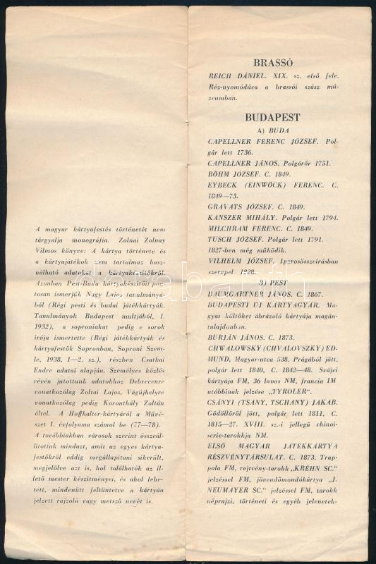 Leírás: 1939 Magyar kártyafestők adatai 8p kis nyomtatvány, hajtva