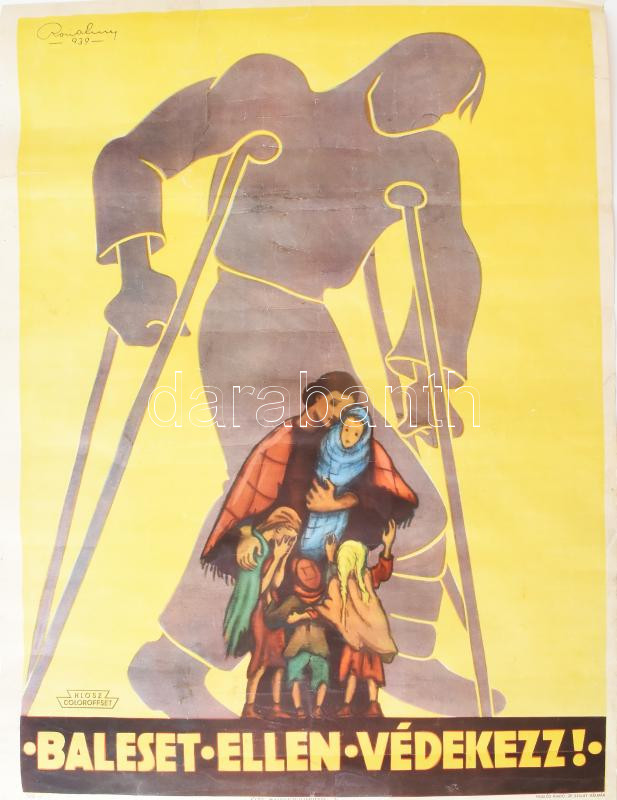 Baleset ellen védekezz. Plakát Róna Emy jelzett grafikájával. Klösz ny... https://www.darabanth.com/hu/460-Gyorsarveres/460.0/Mutargy-papirregiseg-egyeb/Plakat~1000003/Baleset-ellen-vedekezz-Plakat-Rona-Emy-jelzett-grafikajaval-Klosz-nyomda-ca-1930-50x65-cm~II3085896