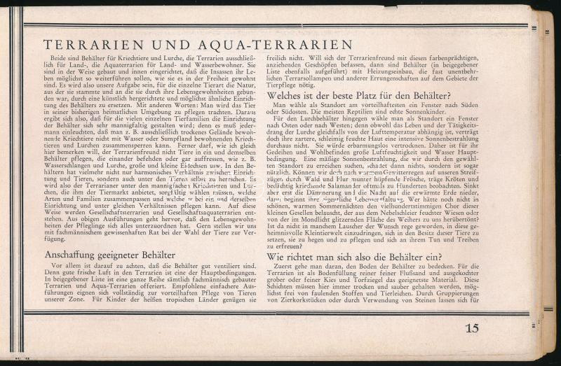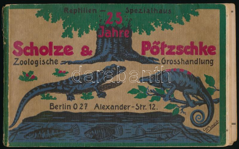1930 Reptilien-Spezialhaus 25 Jahre, Scholze & Pötzschke Zoologische Grosshandlung, Berlin, Alexander-Str. 12. / Egzotikus állatok nagykereskedésének katalógusa (hüllők, kétéltűek, halak, akváriumok és kellékek). Szövegközi és egészoldalas, fekete-fehér és színes illusztrációkkal, német nyelven. Kiadói papírkötés, sérült, szétváló fűzéssel, 268 p. (Ritka!)