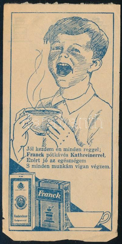 Franck kávé számolócédula, alján lapszéli hibákkal https://www.darabanth.com/hu/460-Gyorsarveres/460.0/Mutargy-papirregiseg-egyeb/Reklam~1000002/Franck-kave-szamolocedula-aljan-lapszeli-hibakkal~II3081157