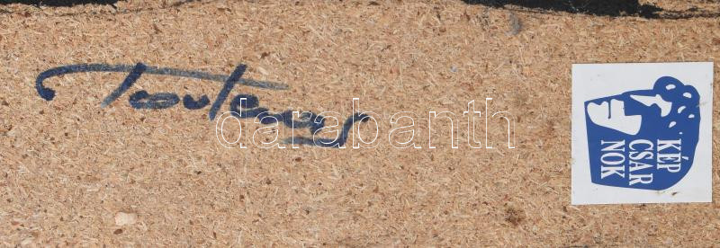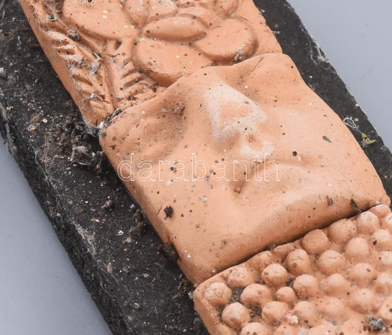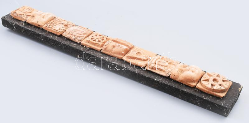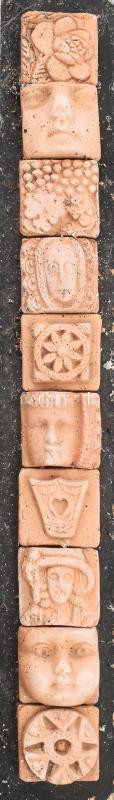 Leírás: Togyerás József (1930-): Plasztikus mozaik. Kőhatású kerámia, farost lapra applikálva, jelzett, kopással, farost sérült, 5x47 cm