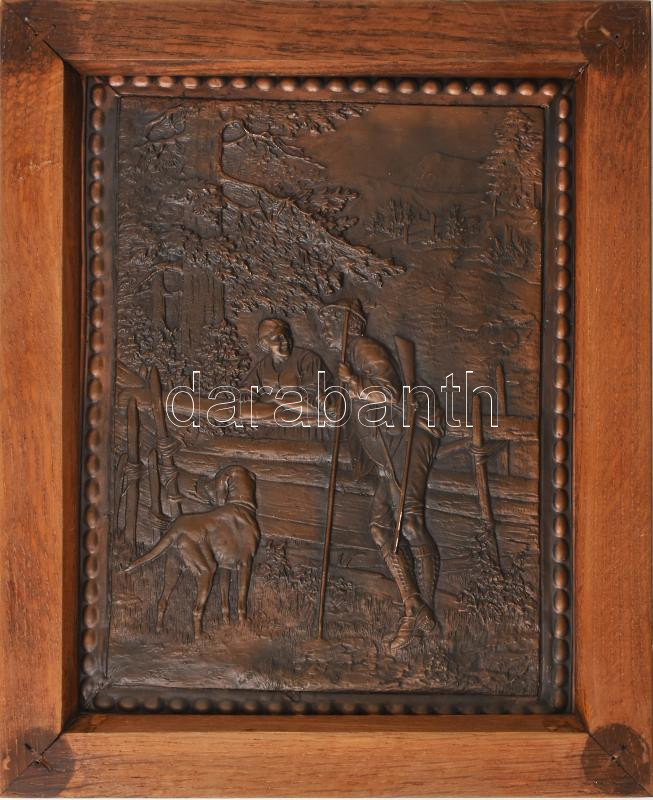 Vadászat. Bronzlemez kép, keretezve, 23x18 cm https://www.darabanth.com/hu/460-Gyorsarveres/460.0/Mutargy-papirregiseg-egyeb/Szobrok-kisplasztikak-plakettek~500010/Vadaszat-Bronzlemez-kep-keretezve-23x18-cm~II3087257