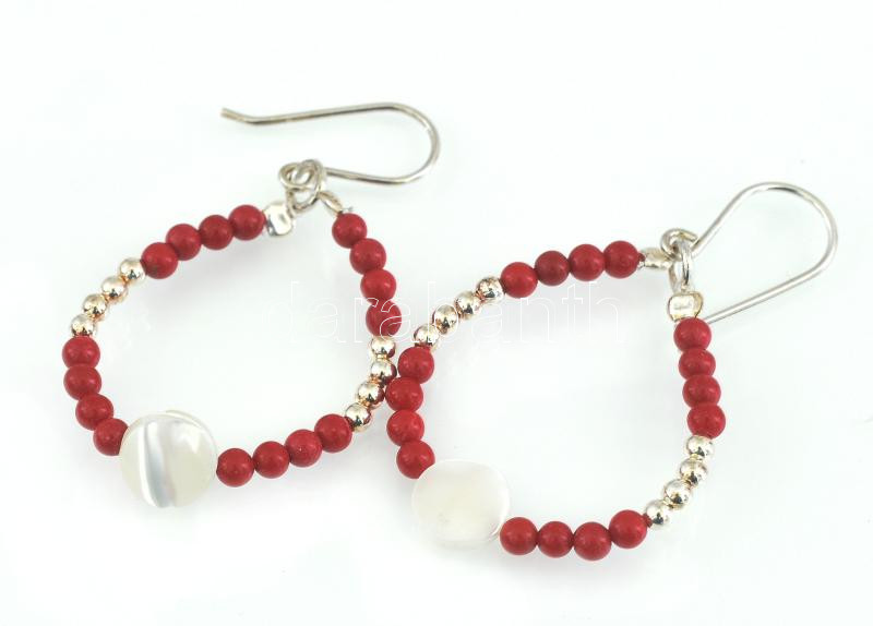 Leírás: Ezüst(Ag) fülbevalópár korallal, jelzett, h: 3,5 cm, bruttó: 2,96 g