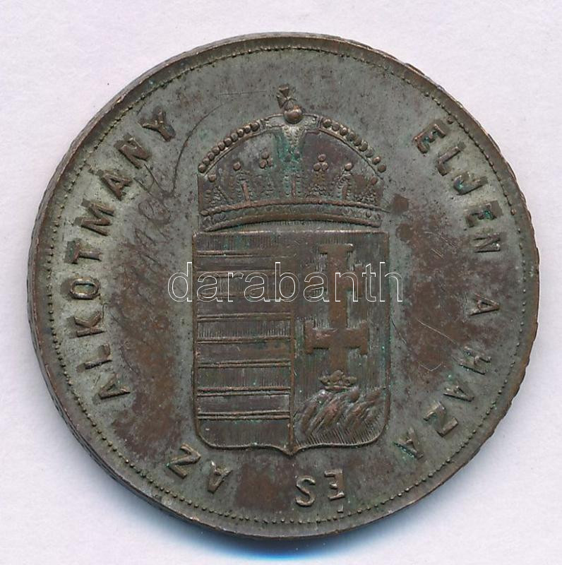1867. "I. Ferenc József budai koronázására" ezüstözött fém koronázási zseton, "EMLÉK PÉNZ - DENK MÜNZE" peremirattal. "A Buda Pesti Koronázás 1867 június 8-án / Éljen a Haza és az Alkotmány" (32mm) T:VF patina, kopott ezüstözés peremhiba Hungary 1867. "Coronation medal" silver plated commemorative medallion of the coronation of Franz Joseph I (32mm) C:VF patina, worn silvering