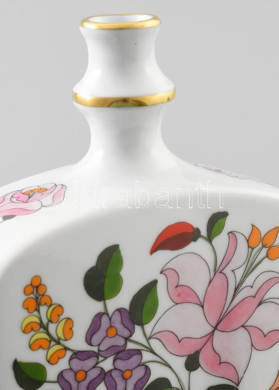 Leírás: Kalocsai gazdagon díszített pálinkás készlet. Butella és 6 darab pohár. Jelzett, hibátlan, m: 4 cm, 20 cm