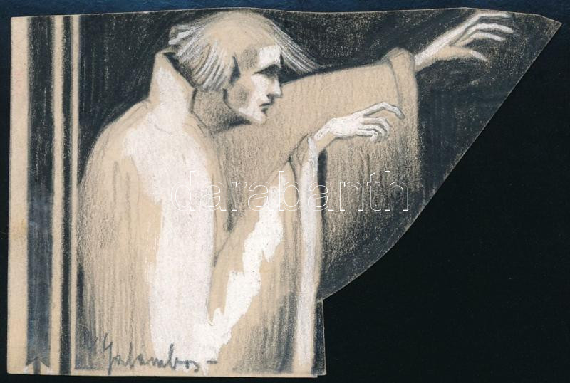 Leírás: Galambos Margit (?-?), működött 1920-30 körül: Próféta. Vegyes technika, papír, jelzett. Szélein vágott 6,5x9,5 cm