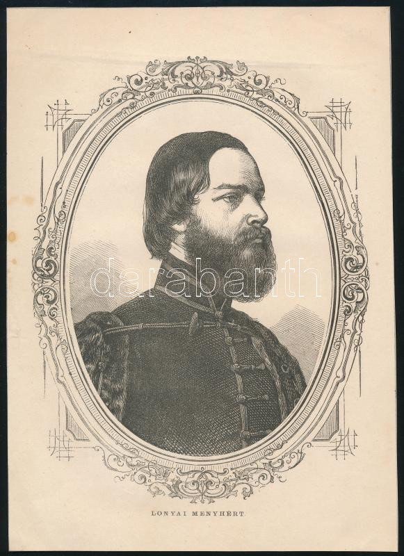 cca 1860 Gróf Lónyay Menyhért (1822-1884) politikus, miniszter, az Andrássy-kormány pénzügyminisztere (1867-1870), majd az Osztrák-Magyar Monarchia közös pénzügyminisztere (1871-1871), majd a Magyar Királyság miniszterelnöke (1871-1872), az MTA tagja, majd annak elnökének (1871-1884) arcképe, fametszet, papír, kissé foltos, 22x16 cm