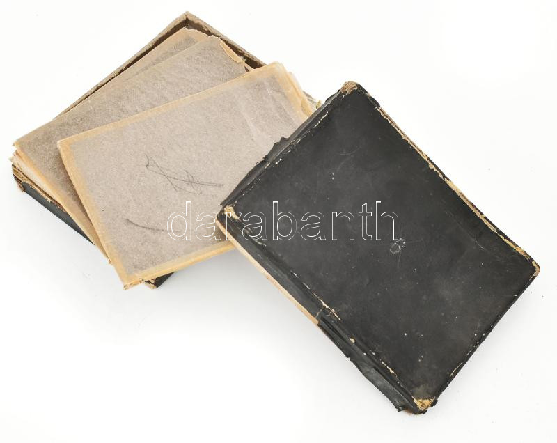12 db régi üvegnegatív, díszes képkereteket ábrázoló felvételekkel, 12x9 cm méretben, kissé sérült kartondobozban