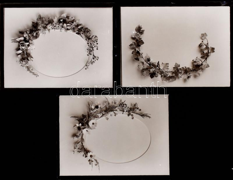 12 db régi üvegnegatív, díszes képkereteket ábrázoló felvételekkel, 12...