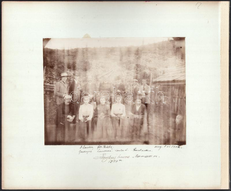 Leírás: 1902 Piboj-havas (1550 m), a Velikától Ny-ra, Máramarosi-havasok, csoportkép, feliratozott fotó, 16,5×21 cm