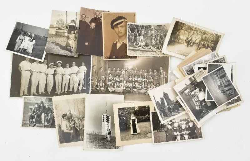 cca 1925-1960 Vegyes fotó tétel (közte gyerekek, apácák, csoportképek, a Széchenyi-hegyi adótorony, stb.), össz. 35 db fotó, változó méretben és állapotban