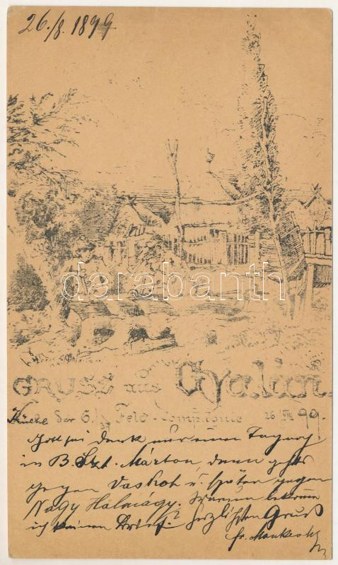 1899 (Vorläufer) Gyalár, Ghelari; Feld-Compagnie / Katonai tábor / mil... https://www.darabanth.com/hu/461-Gyorsarveres/461.0/Kepeslapok/Erdely~1000002/1899-Vorlaufer-Gyalar-Ghelari-Feld-Compagnie-Katonai-tabor-military-camp-EK~II3094253