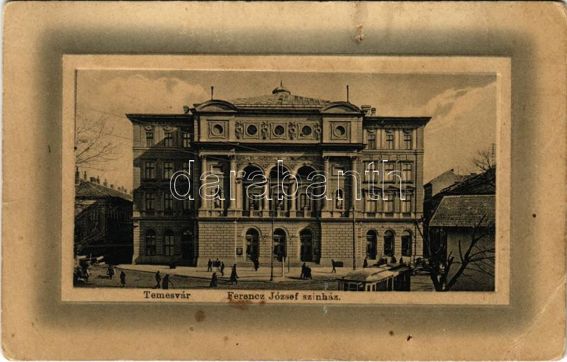 Temesvár, Timisoara; Ferenc József színház, villamos. "Ideal" W.L. Bp.... https://www.darabanth.com/hu/461-Gyorsarveres/461.0/Kepeslapok/Erdely~1000002/Temesvar-Timisoara-Ferenc-Jozsef-szinhaz-villamos-Ideal-WL-Bp-No-6660-theatre-tram-b~II3094613