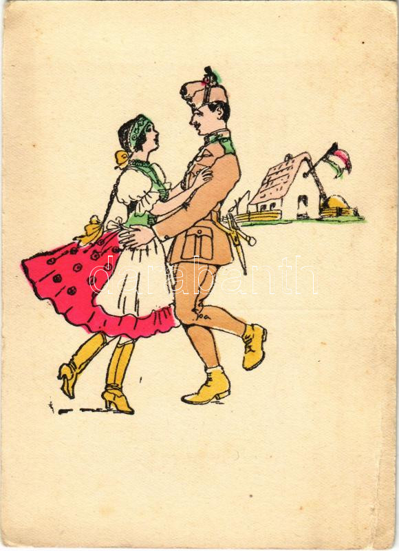 Bevonulás. Kiadja a Délvidéki Egyetemi és Főiskolai Hallgatók Egyesülete / WWII Hungarian military art postcard, entry of the Hungarian troops, irredenta propaganda (EB)