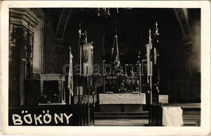 1942 Bököny (Nagykálló), templom belső. photo (EK) https://www.darabanth.com/hu/461-Gyorsarveres/461.0/Kepeslapok/Magyarorszag~1000001/1942-Bokony-Nagykallo-templom-belso-photo-EK~II3089123