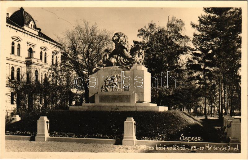 Sopron, 76. gyalogezred hősi emlékműve. Zsabokorszky mérnök felvétele https://www.darabanth.com/hu/461-Gyorsarveres/461.0/Kepeslapok/Magyarorszag~1000001/Sopron-76-gyalogezred-hosi-emlekmuve-Zsabokorszky-mernok-felvetele~II3095207