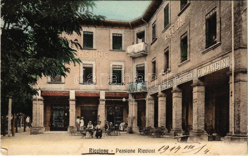 1914 Riccione, Pensione Riccioni / hotel and bar (EK) https://www.darabanth.com/hu/461-Gyorsarveres/461.0/Kepeslapok/Olaszorszag~1000041/1914-Riccione-Pensione-Riccioni-hotel-and-bar-EK~II3094090
