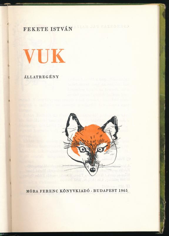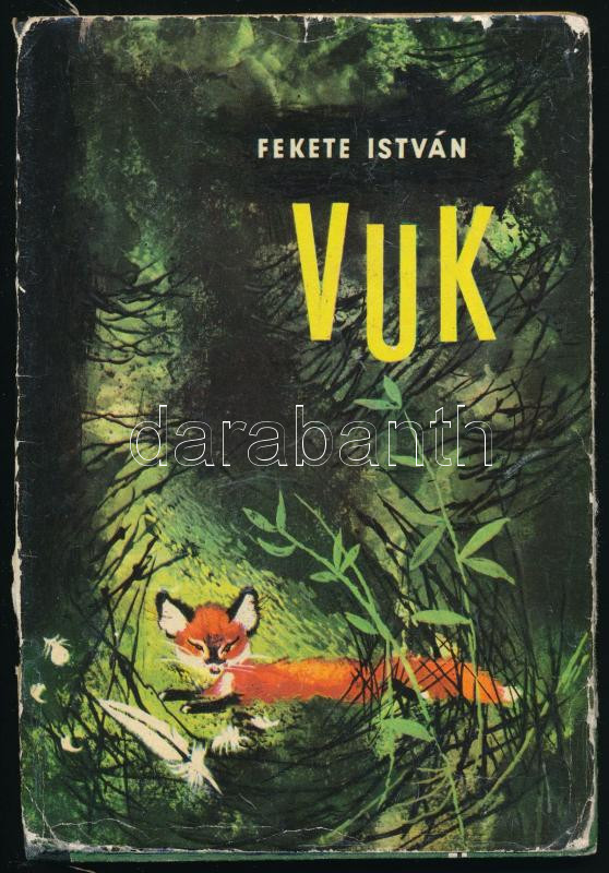 Fekete István: Vuk. Bp., 1965, Móra Ferenc Könyvkiadó. Első kiadás. Csergezán Pál rajzaival illusztrálva. Kiadói félvászon-kötés, sérült kiadói papír védőborítóban, a védőborító részben hozzáragadt a borítóhoz.