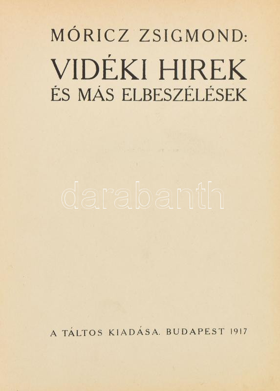 Móricz Zsigmond: Vidéki hírek és más elbeszélések. Bp., 1917, Táltos. Első kiadás! Haranghy Jenő illusztrációival. Korabeli átkötött félvászon kötéssel, kissé kopott borítóva.