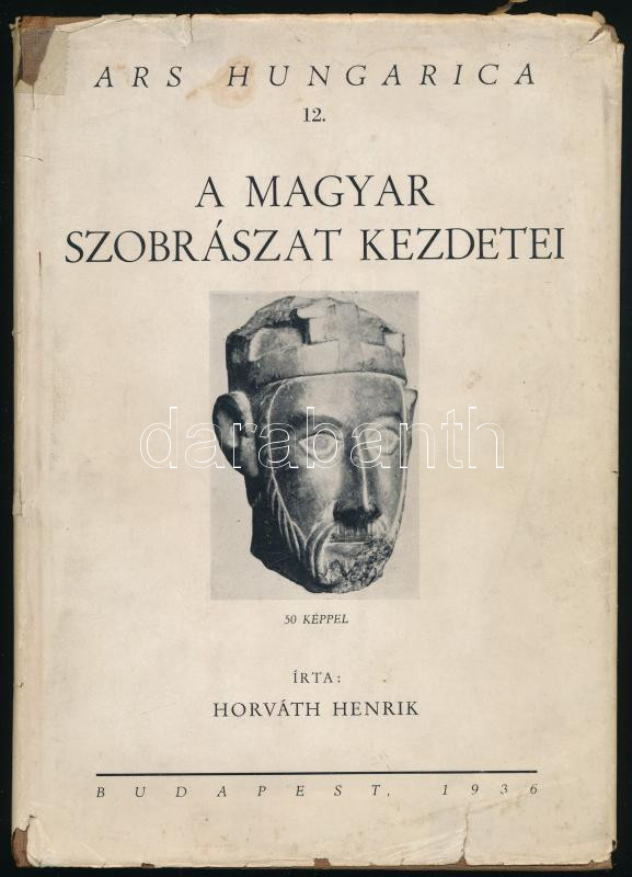 Horváth Henrik: A magyar szobrászat kezdetei. Ars Hungarica 12. Szerk.: (Oltványi)-Ártinger Imre. Bp., 1936, Bisztrai Farkas Ferenc,(Maretich-ny.), 32 p.+32 (fekete-fehér képtáblák) t.+2 p. Kiadói festett egészvászon-kötés, kiadói sérült és foltos papír védőborítóval.