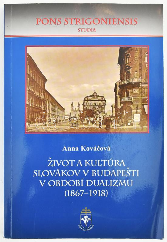 Kovács Anna: A szlovákok élete és kultúrája Budapesten a dualizmus korában (1867-1918.) Pons Strigoniensis Studia. VI. Piliscsaba - Esztergom, 2006, Pázmány Péter Katolikus Egyetem Bölcsészettudományi Kar Szlavisztika - Közép-Európai Intézet Nyugati Szláv Kulturális Kutatócsoport. Kétnyelvű, magyar és szlovák nyelven. Kiadói papírkötésben, a borító egyik sarkán gyűrődéssel.