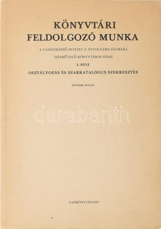Könyvtári feldolgozómunka a tanítóképző intézet II. évfolyama számára (Népművelő-könyvtáros szak), 2. rész. Osztályozás és szakkatalógus-szerkesztés. Bp., Tankönyvkiadó. Kiadói papírkötés, jó állapotban.