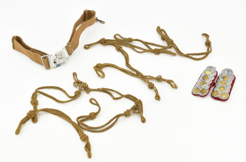 Leírás: 9 db katonai zsinór, vállapok, úttörő öv