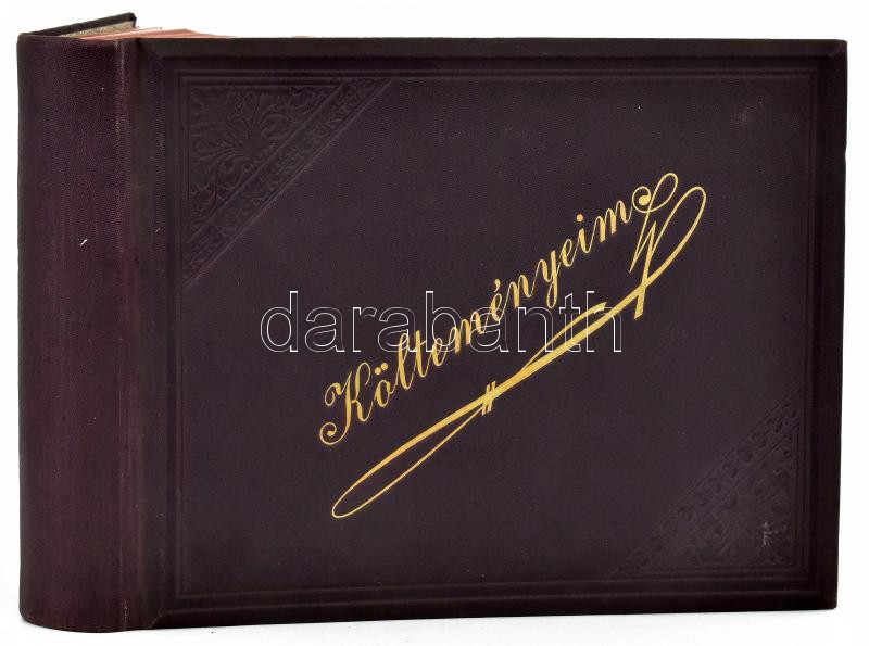 "Költeményeim", régi, kitöltetlen könyv / füzet, több száz üres lappal. Aranyozott, dombornyomott egészvászon-kötésben, festett lapélekkel, jó állapotban, 22x17x3 cm