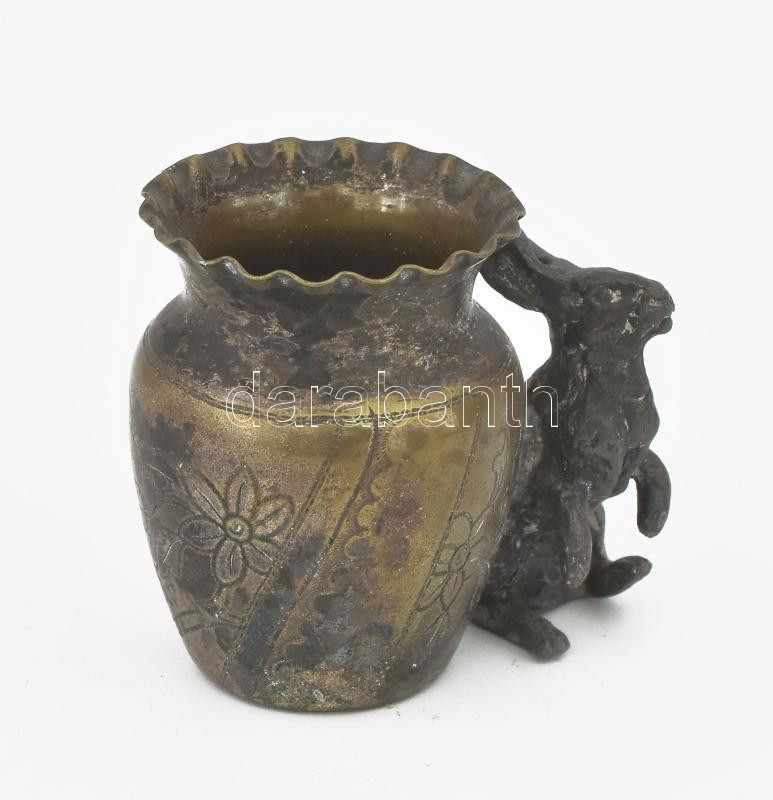 Nyúl figurás kisváza. Bronz, m: 4,5 cm https://www.darabanth.com/hu/461-Gyorsarveres/461.0/Mutargy-papirregiseg-egyeb/Bolhapiac~1500014/Nyul-figuras-kisvaza-Bronz-m-4-5-cm~II3091216