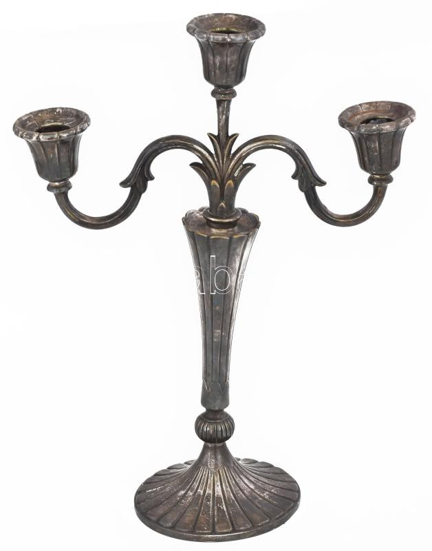 Leírás: Gyertyatartó. Ezüstözött fém, m: 37 cm