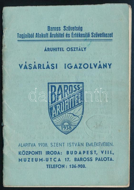 1941 Baross Szövetség Tagjaiból Alakult Áruhitel és Értékesítő Szövetk... https://www.darabanth.com/hu/461-Gyorsarveres/461.0/Mutargy-papirregiseg-egyeb/Okmanyok~1500020/1941-Baross-Szovetseg-Tagjaibol-Alakult-Aruhitel-es-Ertekesito-Szovetkezet-vasarlasi-igazolvanya~II3094745