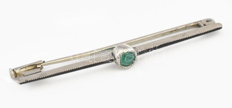 Leírás: 14k fehérarany (Au) bross smaragd és zománc ékítéssel . 0,4 ct 2,4 g