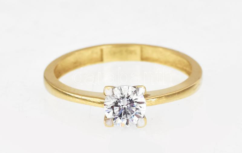 Leírás: Arany (Au) 14K szoliter köves gyűrű, jelzett, méret: 50, bruttó: 1,3 g